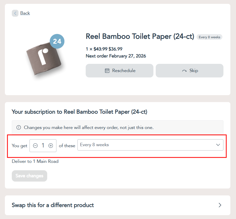 Step 3: On the subscription management page, select the new delivery frequency and click the Save Changes button