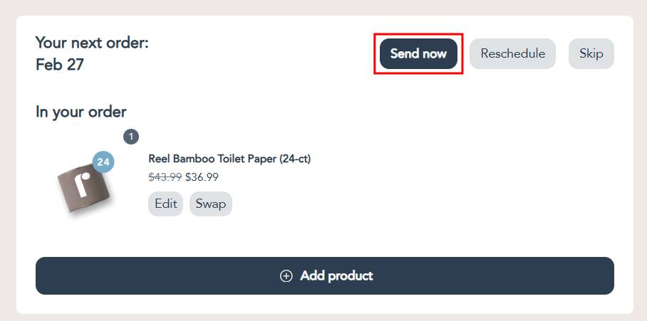 Step 2: Under the Your next order section, click the Send now button