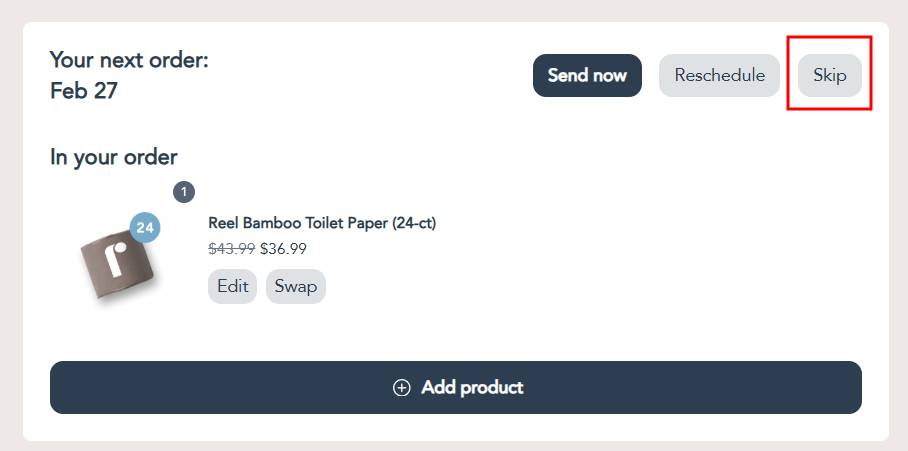 Step 2: Under the Your next order section, click the Skip button